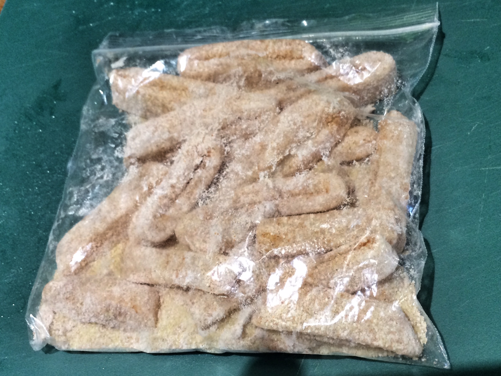 - For the calamari, in a sealable sandwich bag (or a shallow bowl if you don’t have any to hand) add all the dry ingredients. Then cut up the squid into rings and pop into the bag and seal. Shake it all about until the squid is lightly coated.