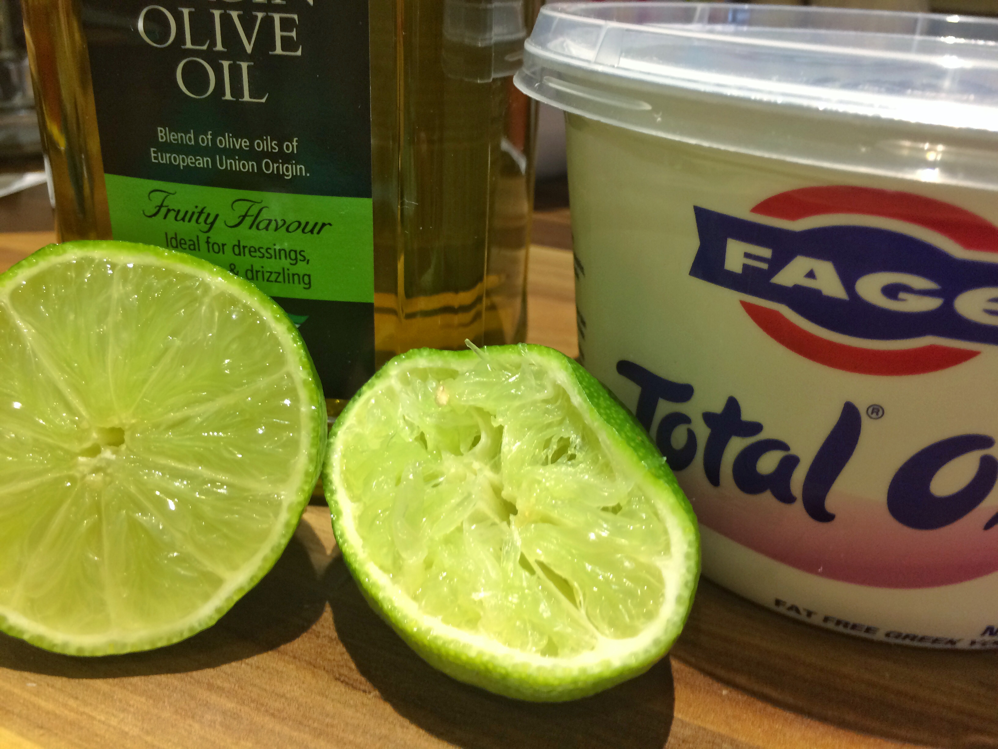 - The dressing is superbly simple to make, simply mix together a tablespoon of the yoghurt, olive oil and a good squeeze of fresh lime juice and quickly stir together.