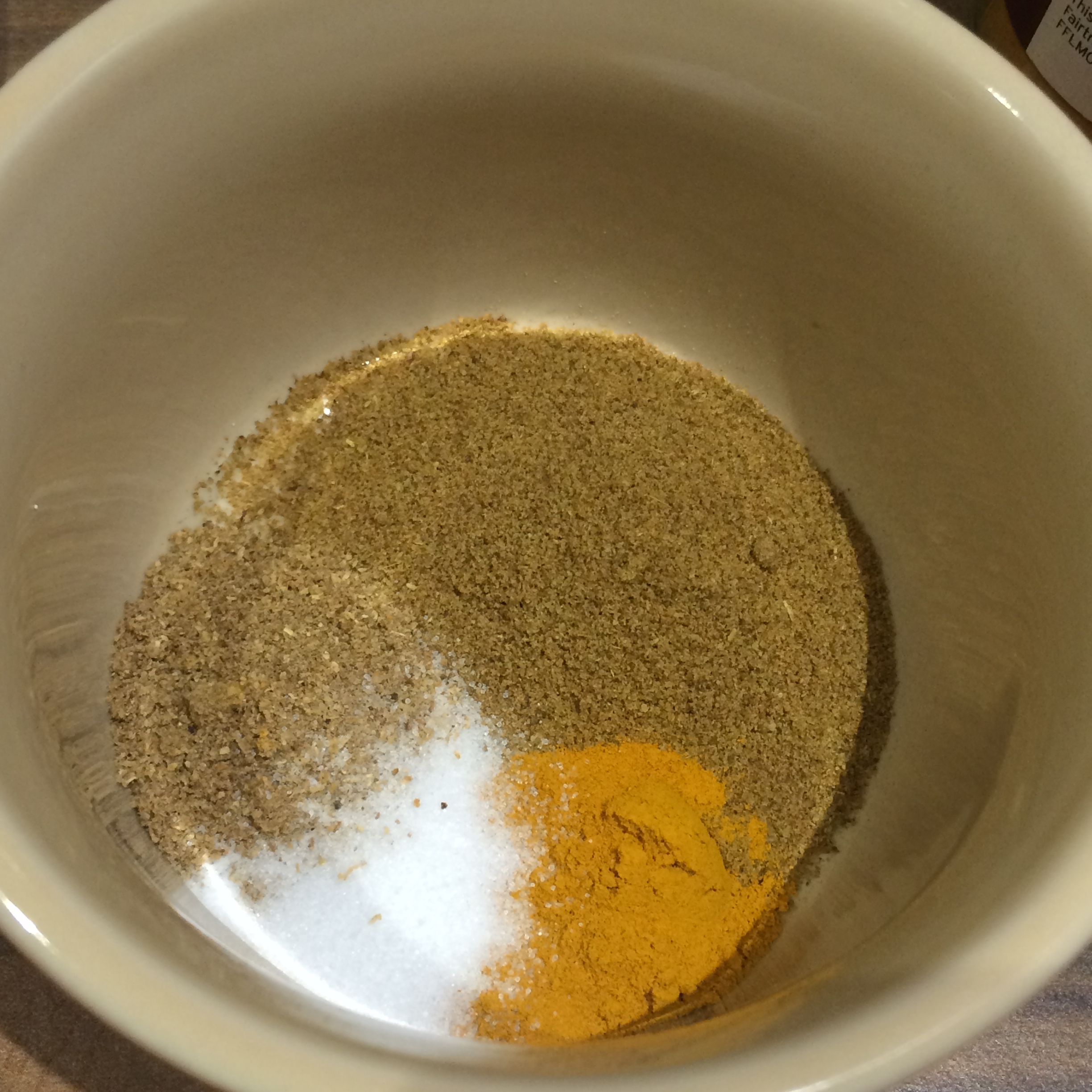 - Add 150ml of water, the finely chopped coriander leaves, the spices, salt, lemon juice and stir together.