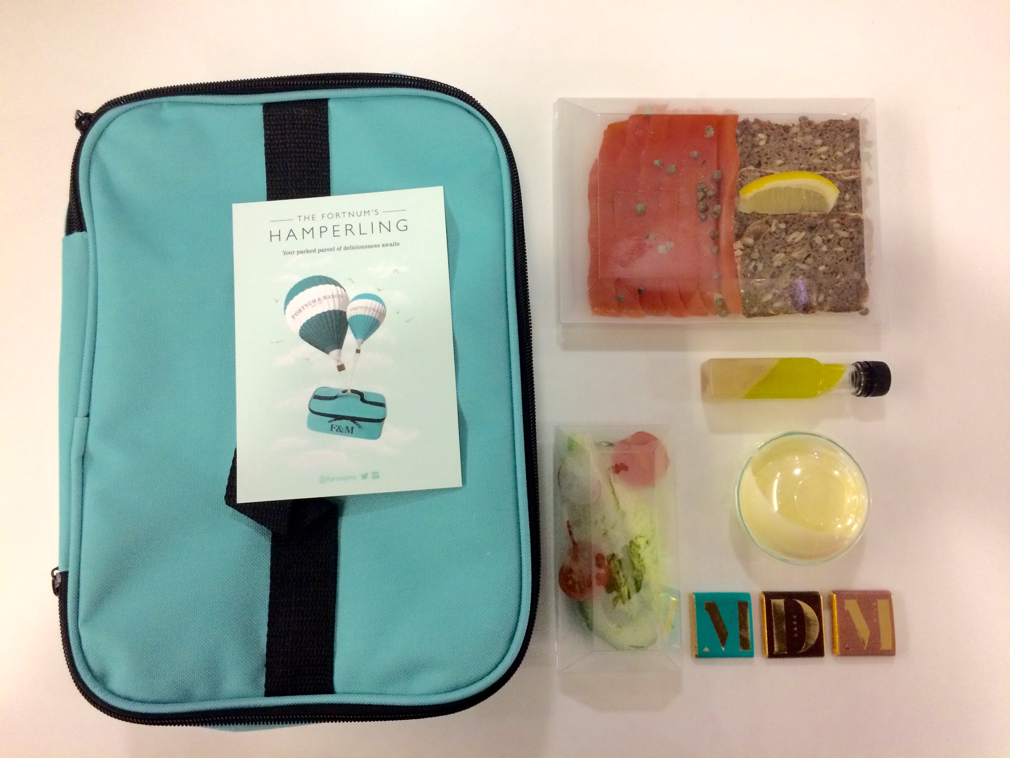 Fortnum & Mason, the luxury department store known for its tea and food offerings has redefined travel food in the form of its Hamperling options (ranging from £15 to £50) including smoked salmon, salt-aged beef and foie gras!