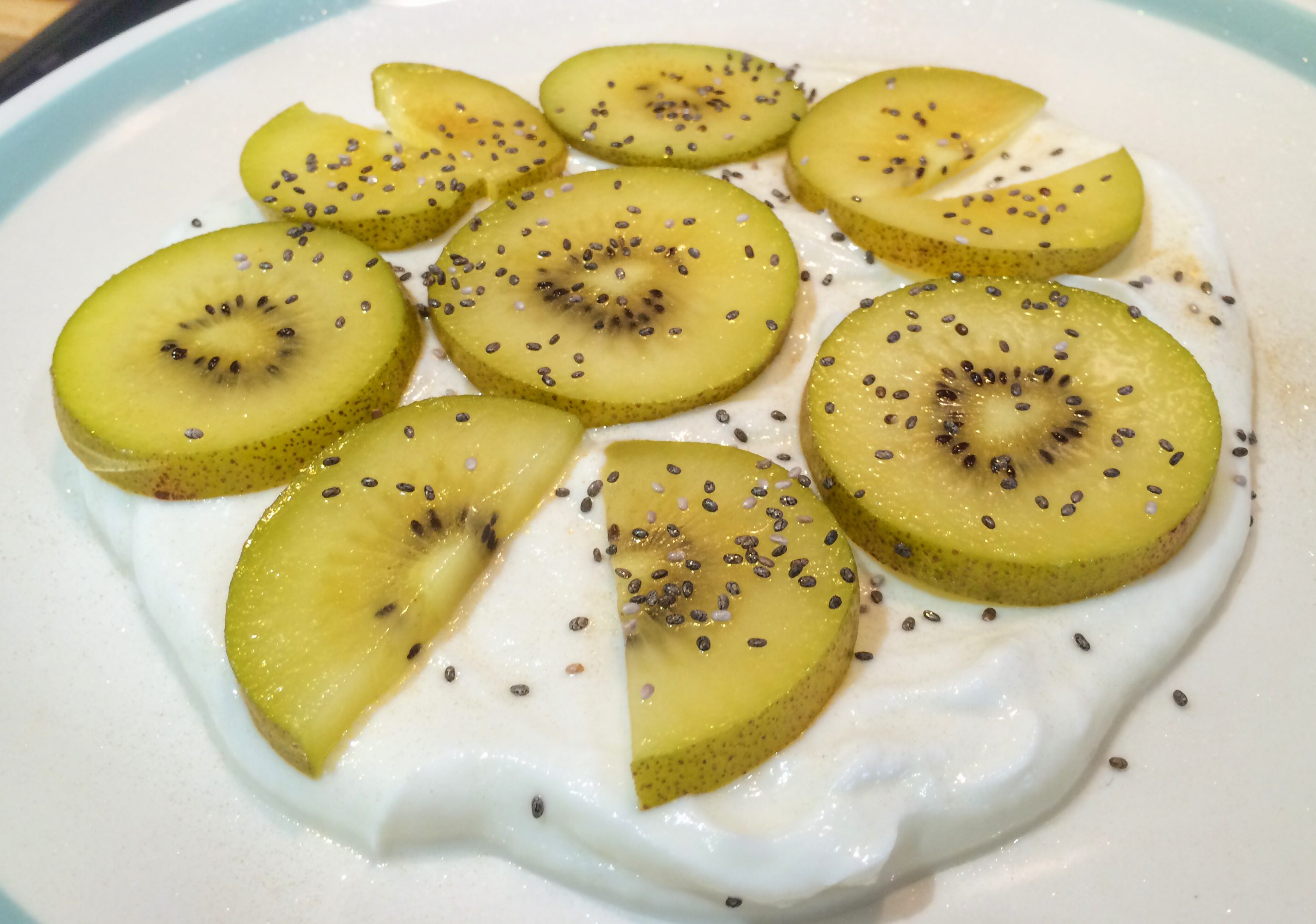 For dessert, we equally enjoyed this seasonal Zespri® kiwifruit as is, or with yoghurt and chia seeds as a healthy dessert option.