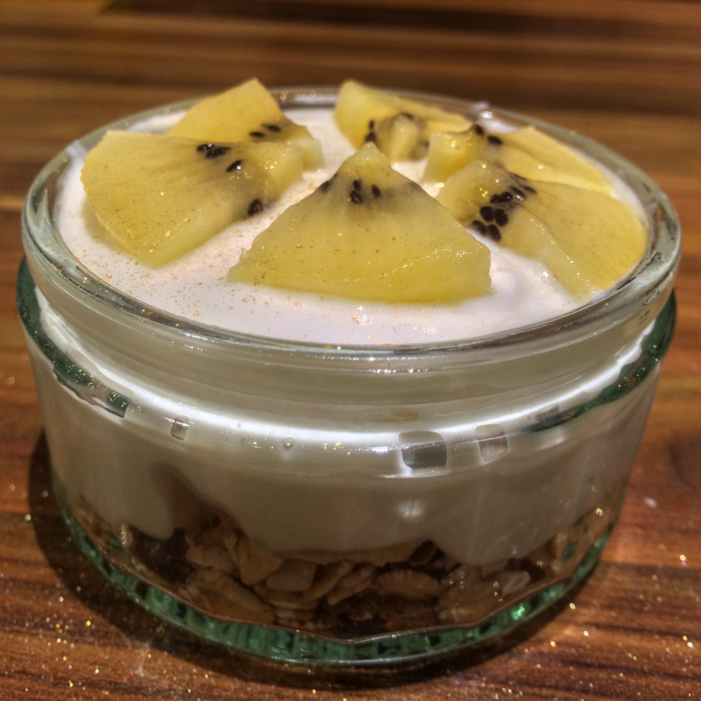 As a healthy breakfast we ate homemade granola with Skyr yoghurt (mixed with honey) topped with pieces of SunGold kiwifruit.