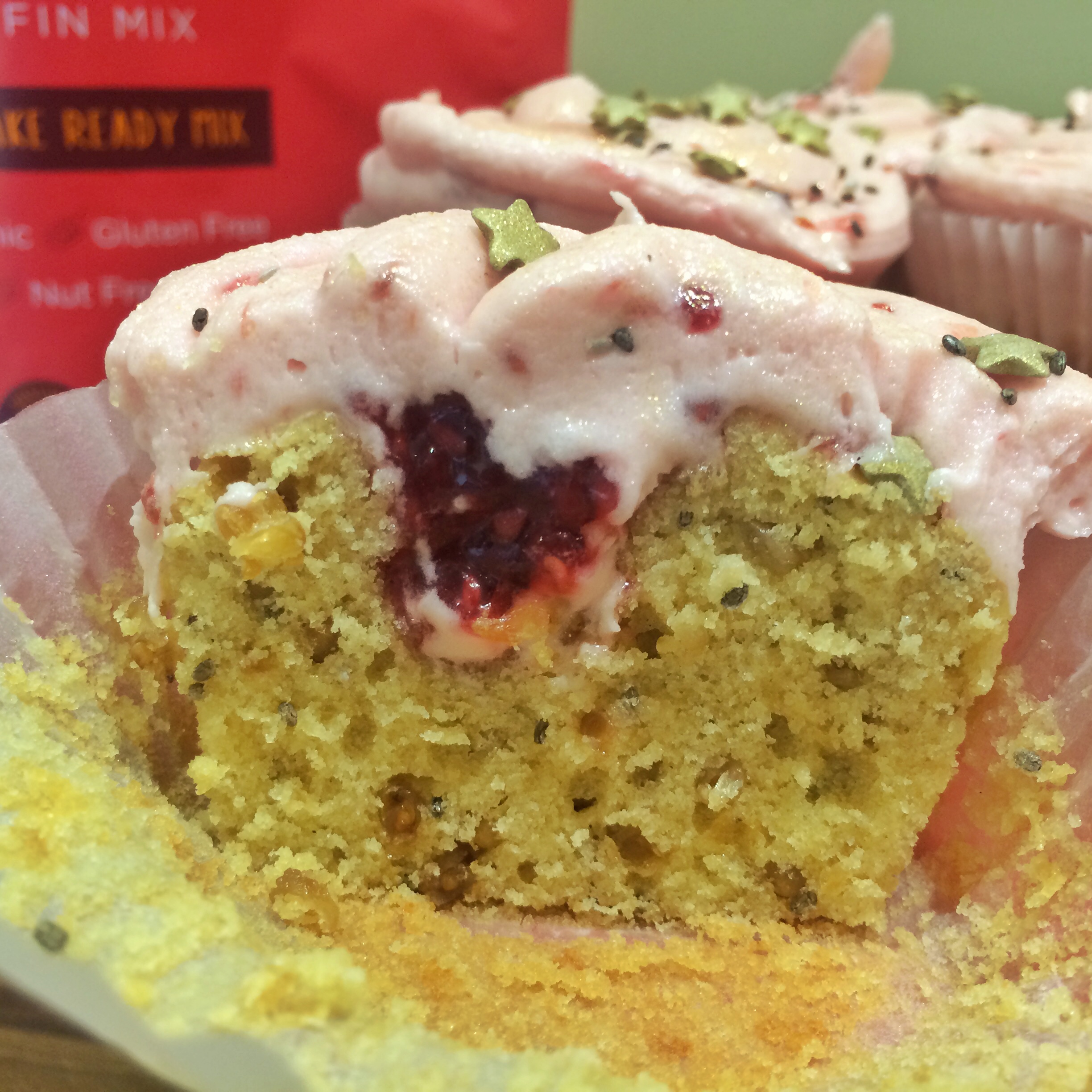 At the Season’s Eatings kitchen, we received a sample of Creative Nature’s Chia and Mulberry muffin mix, so decided to bake it with the addition of our own raspberry and chia frosting.